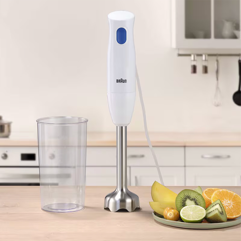 De la simplicité et de la légèreté avec le mixeur plongeant le nouveau MultiQuick 1. Conçu pour faciliter la préparation de vos recettes. Une seule pression suffit. Il suffit de cliquer et de maintenir le bouton enfoncé pour mixer des smoothies, des soupes et de délicieuses sauces – avec un minimum d’effort ! Le moteur Braun de 450 watts est parfait pour la création de recettes simples. Et si vous avez envie d’être un peu plus créatif, une simple rotation suffit pour changer d’accessoire. Le système EasyTwist vous permet de retirer rapidement le pied mixeur pour fixer un autre accessoire.